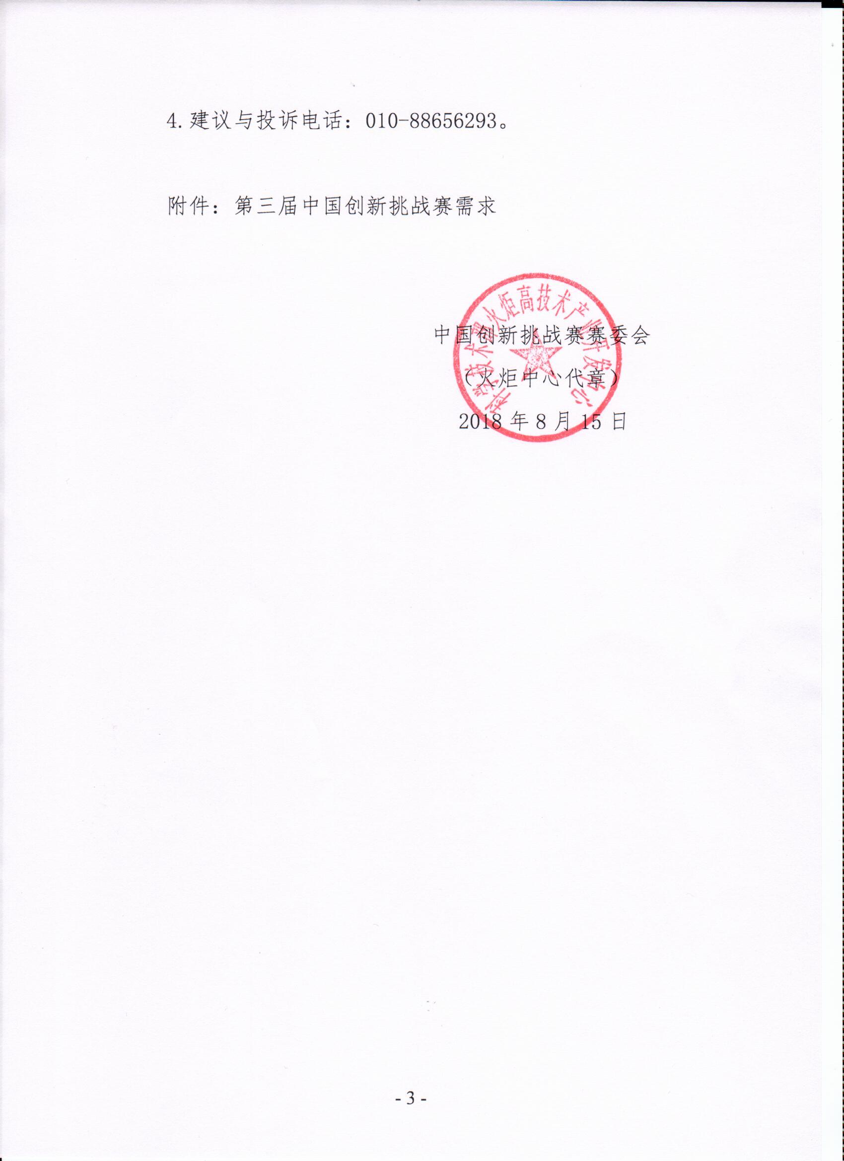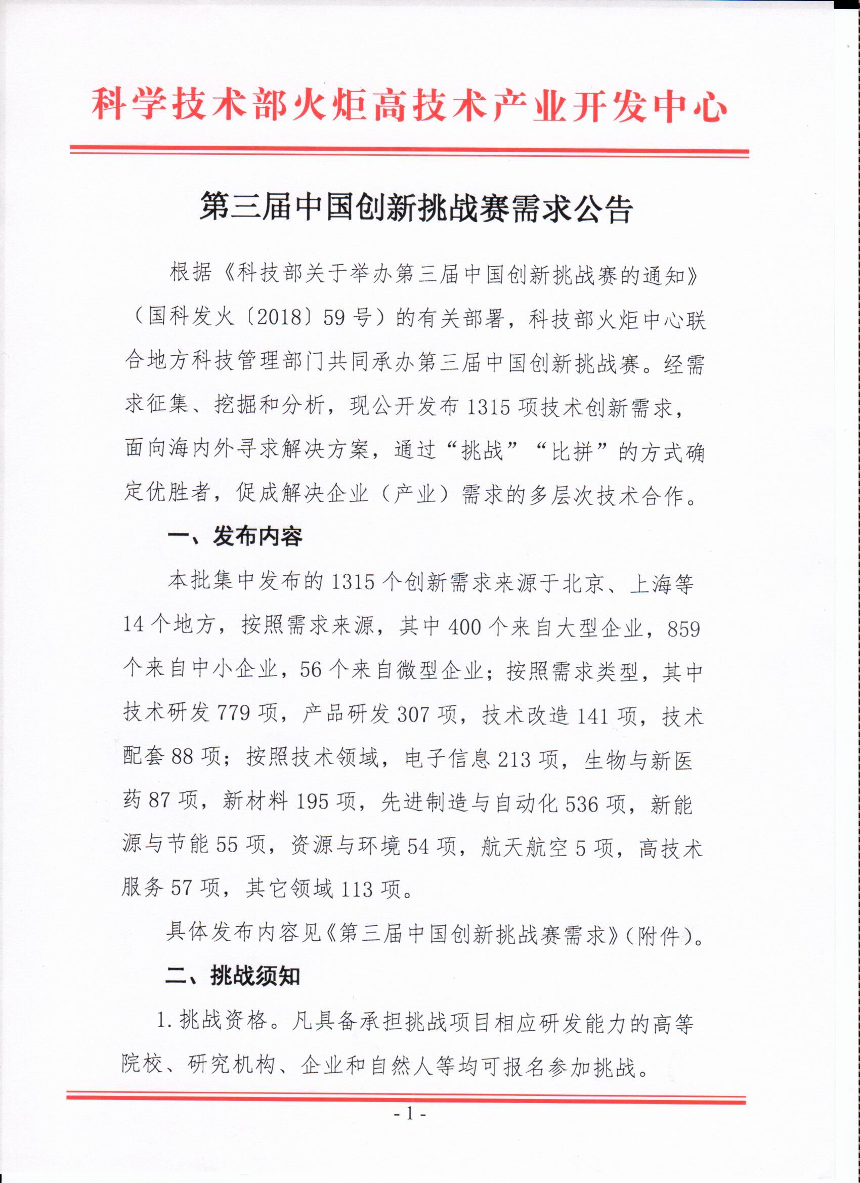 第三届中国创新挑战赛需求公告
