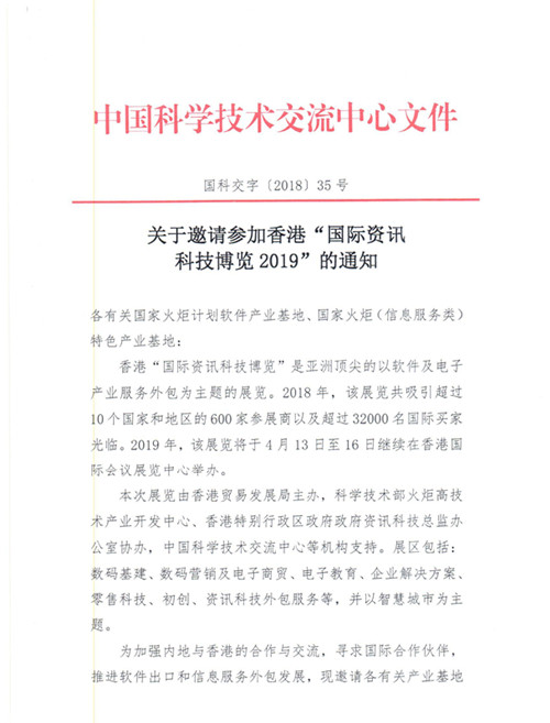 关于邀请参加香港“国际资讯科技博览2019”的通知