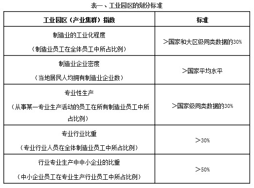 1993年4月,意大利工业部对工业园区的划分标准进行了具体规定。见表一。