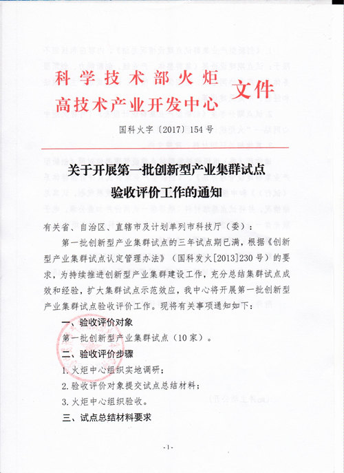 关于开展第一批创新型产业集群试点验收评价工作的通知