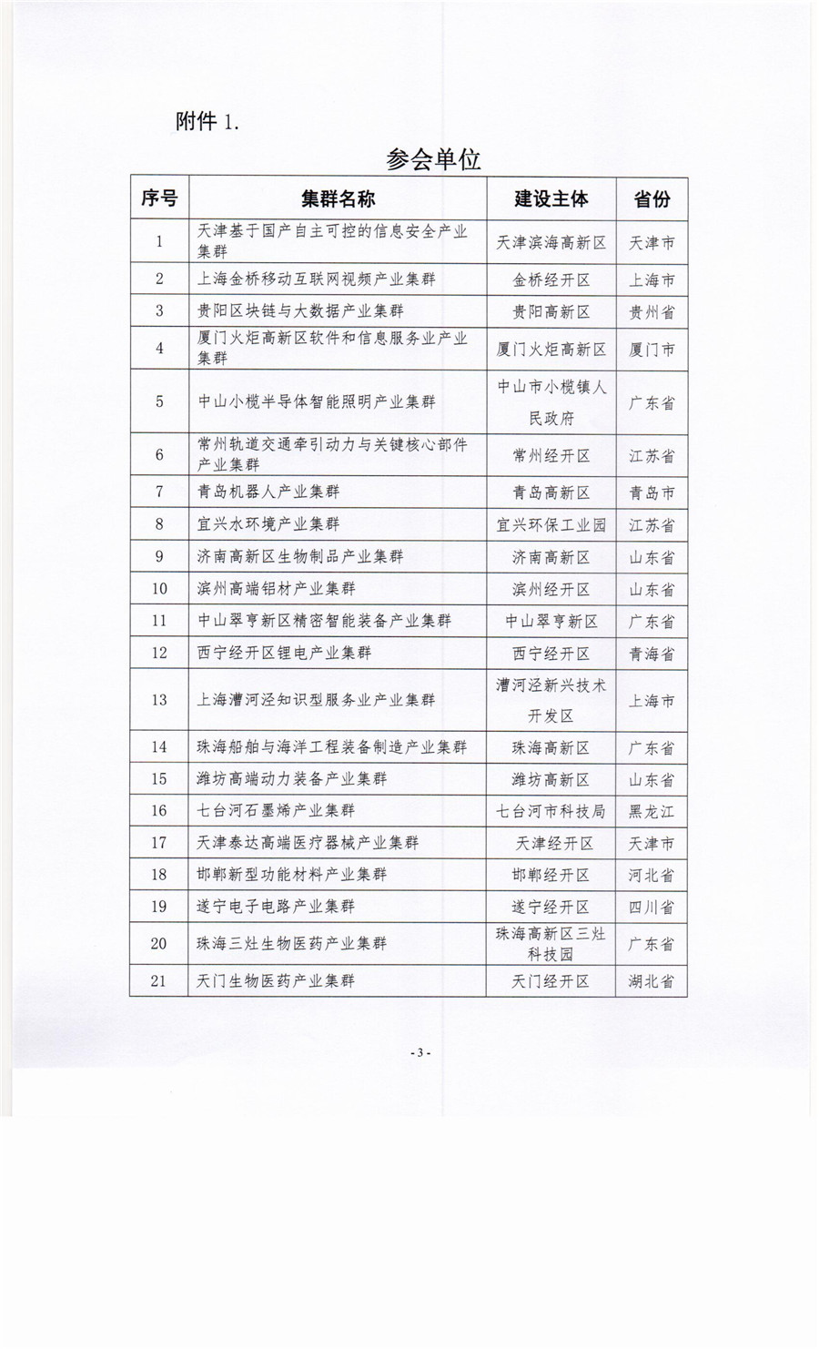 关于召开第三批创新型产业集群培育工作座谈会的通知
