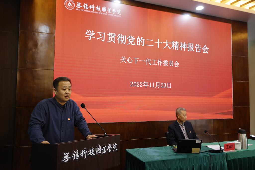 11月23日下午,校关工委在培训中心举办学习贯彻党的二十大精神宣讲报告会。校关工委常务副主任王国忠教授作辅导报告,各党总支书记、关工委联络员、青马工程培训班学员等参加报告会。组织部部长胡光明主持报告会。