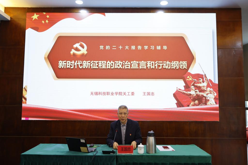 王国忠以《新时代新征程的政治宣言和行动纲领》为题从时代背景—大党大国与世人世界、主要内容—发展格局与战略部署、贯彻要求—两个高潮与三个转换三方面对党的二十大精神作了深入浅出的阐释。他指出,党的二十大精神内涵丰富、博大精深,希望广大师生按照“五个牢牢把握”的重要 要求,在全面学习、全面把握、全面落实上下 功夫,持续掀起深入学习贯彻二十大精神的热潮。