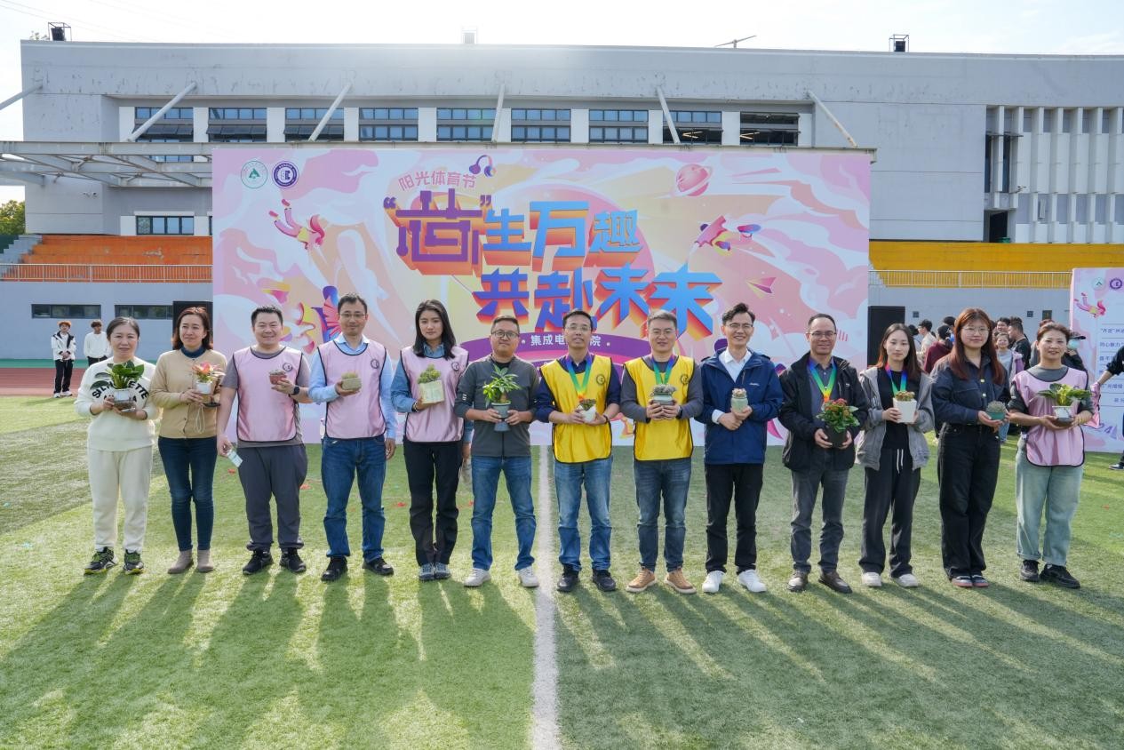 为构建协同联动,多方参与的育人机制,共同服务学生多元成长成才,丰富学生文体活动,促进学生身心健康发展,集成电路学院关工委特邀请鸿山街道、华润微、捷普电子、澳鹏科技、晟能科技等多家来自政府、行业、企业的代表,齐聚澳门铁盘算盘490777田径运动场,与学校学工处、团委领导、集成师生共同参与由集成电路学院举办的“‘芯’生万趣,共赴未来”阳光体育节。