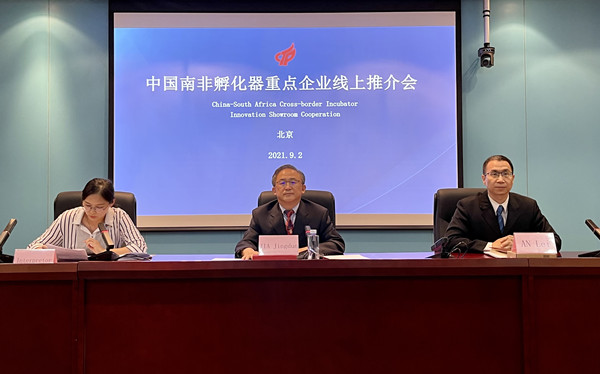 为贯彻落实中国与南非两国间达成的创新合作交流共识,加快推动中国南非科技园合作项目落地,促进双边创新创业交流互动,2021年9月2日,中国南非孵化器重点企业推介会通过线上方式举行。科技部火炬中心主任贾敬敦、南非科技创新部副总司长杜·托伊特、中国驻南非大使馆公使衔参赞沈龙、西安高新区管委会副主任杨华等嘉宾出席活动并致辞。会上来自两国的12家企业分享各自创业经验,对中国南非创新展厅的建设情况及展厅首批入驻项目进行了线上推介。