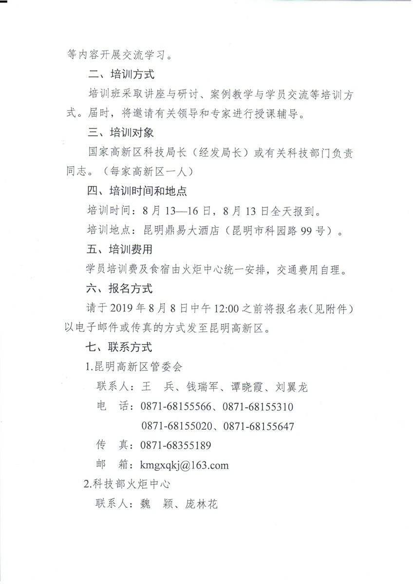 附件1:2019年国家高新区科技局长培训班报名表