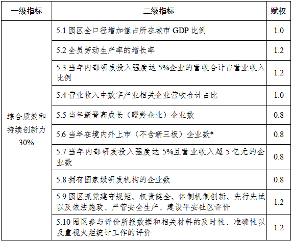 为探索分类评价机制,体现评价指标体系标准基本统一又有所区别对待的原则,部分创新指标和绿色发展指标(用*标注的指标)对东部地区、中部和东北地区、西部地区的各高新区采取差别对待的办法。方法是设置加分系数,对涉及的部分二级指标进行加分处理。
