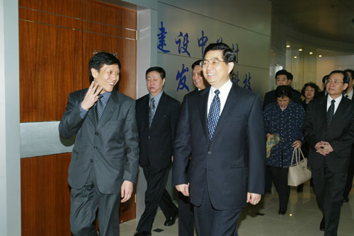时任中共中央总书记胡锦涛到上地信息产业基地视察