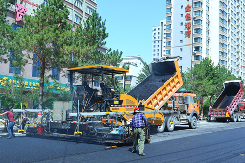 为落实“畅通工程”,筑路工人在铺路