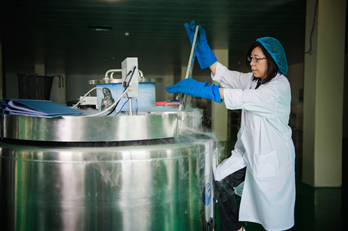 天晴干细胞公司工作人员正在操作设备