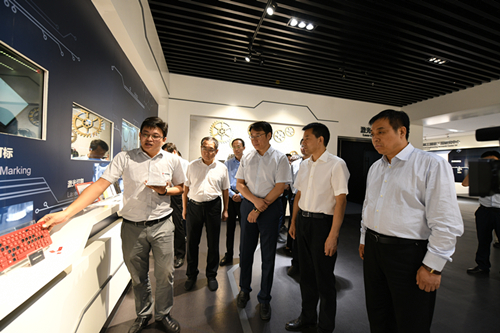 2018年9月11日,陕西省副省长、宝鸡市委书记徐启方(右2)陕西省委科技工委书记、科技厅厅长赵岩(右3)深入激光加工国家工程研究中心西北区域中心调研