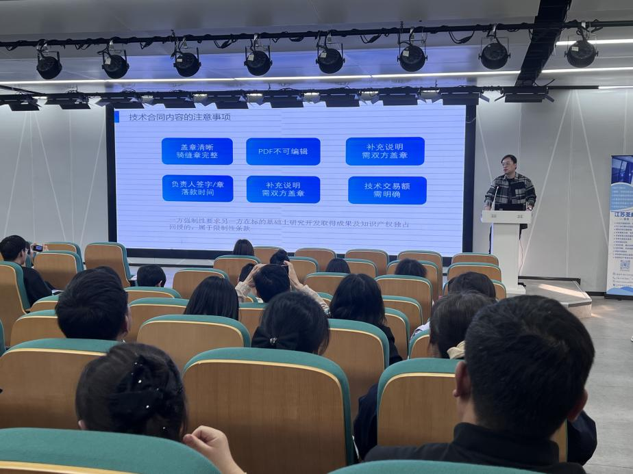 系列活动一:举办“创新引航,知识赋能”专利申报和技术合同认定宣讲会,围绕专利编撰、申报及管理、技术合同备案等关键点,进行了深入浅出的讲解,有效提升了师生对专利申请与管理的认识,为科技成果的转移转化奠定了坚实基础。