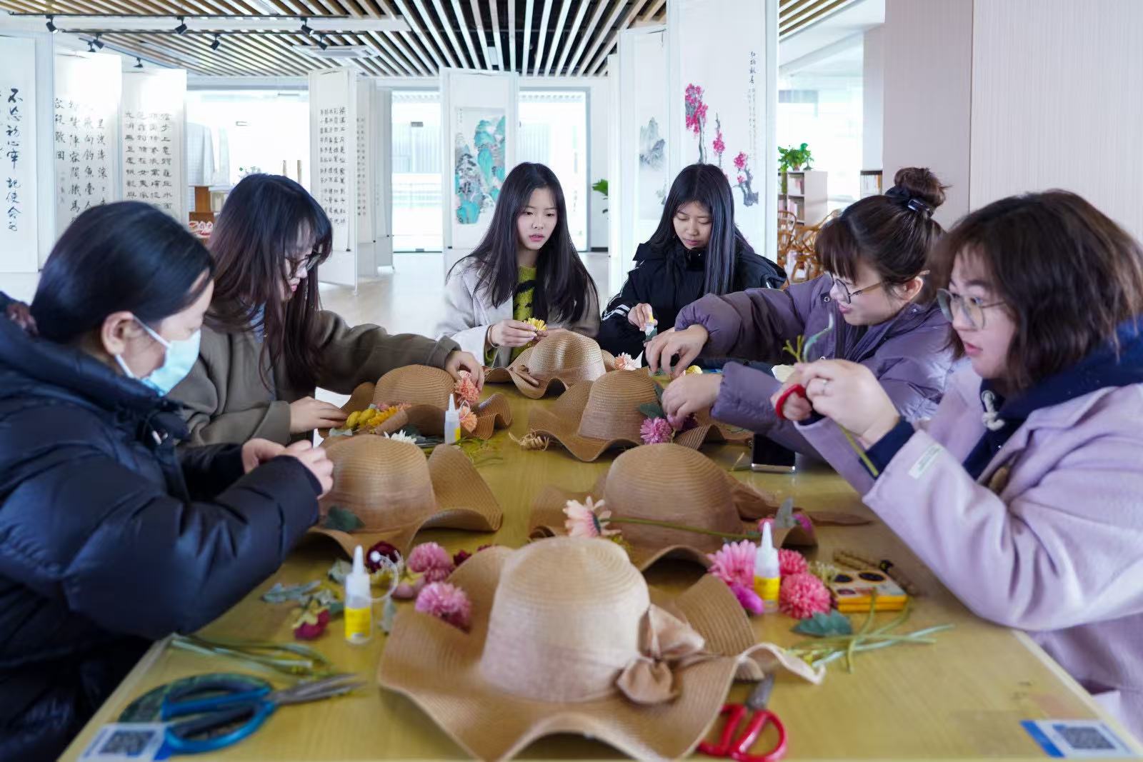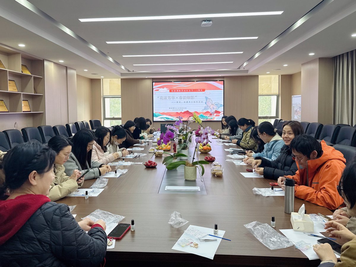 学校各分工会纷纷推出系列特色活动。机关分工会以非遗泥塑赏鉴与红色观影交融匠心精神;集成电路学院分工会融合“以箔为墨”非遗金箔工艺与羽毛球、乒乓球友谊赛,让科技与活力碰撞;物联网与人工智能学院分工会开展非遗缠花与踏青赏花,衔接传统与自然之美;智能制造学院“珠”事顺意串珠活动将一颗颗珠子串联成美好生活期盼;商学院与文化旅游学院“莓”好时光采摘传递生活仪式感;数字艺术学院通过陶瓷数字艺术讲座及手作体验探索文创融合;基础部分工会以插花实践诠释东方美学。一系列活动以非遗传承厚植文化底蕴、以运动健康激发团队活力、以艺术创作涵养美育情怀,多维度展现科院女教职工风采。