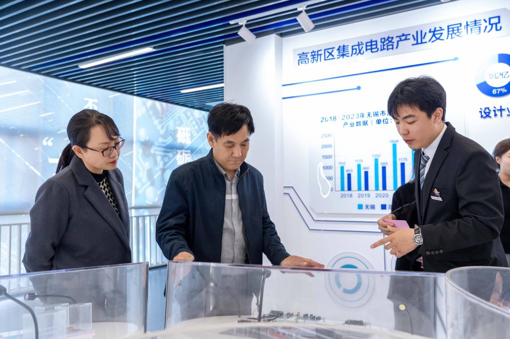在集成电路芯火产业学院,考察组在学生讲解员的引导下,参观了3D显影展示中心、虚拟仿真实训室、成品测试中心、鸿蒙实验室、实训竞赛基地,听取了我校在集成电路产业人才培养、校企协同创新以及社会服务方面的汇报。刘宝民秘书长对学校 “岗课赛证” 深度融合的育人模式给予高度评价。他说,我校人才培养的成果和服务国家战略性产业的实践成果,体现了职业教育在新时代的新作为,希望我校能进一步深化产教融合,为区域经济社会发展输送更多高素质技术技能人才。