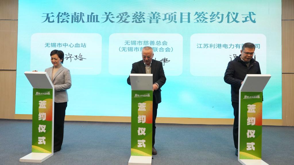 活动现场,市慈善总会副会长方中伟 、爱心企业代表江苏利电能源集团党委委员谢恭明、市中心血站站长许路共同签署无偿献血关爱慈善项目合作协议。该项目将为积极参与无偿献血中的家庭经济困难大中专院校学生提供慈善救助金。