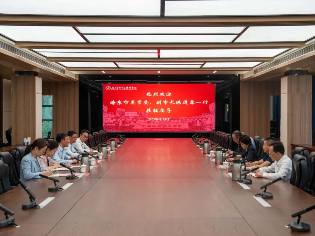 4月24日上午,青海省海东市委常委、副市长陈道霖,海东市政府副秘书长刘斌,青海高等职业技术学院党委书记李海元,党委副书记、院长徐伟一行来校考察交流。我校党委书记张国华、副校长王锡刚及相关部门负责人陪同参观并座谈交流。