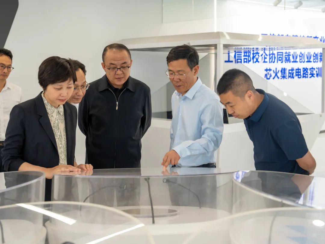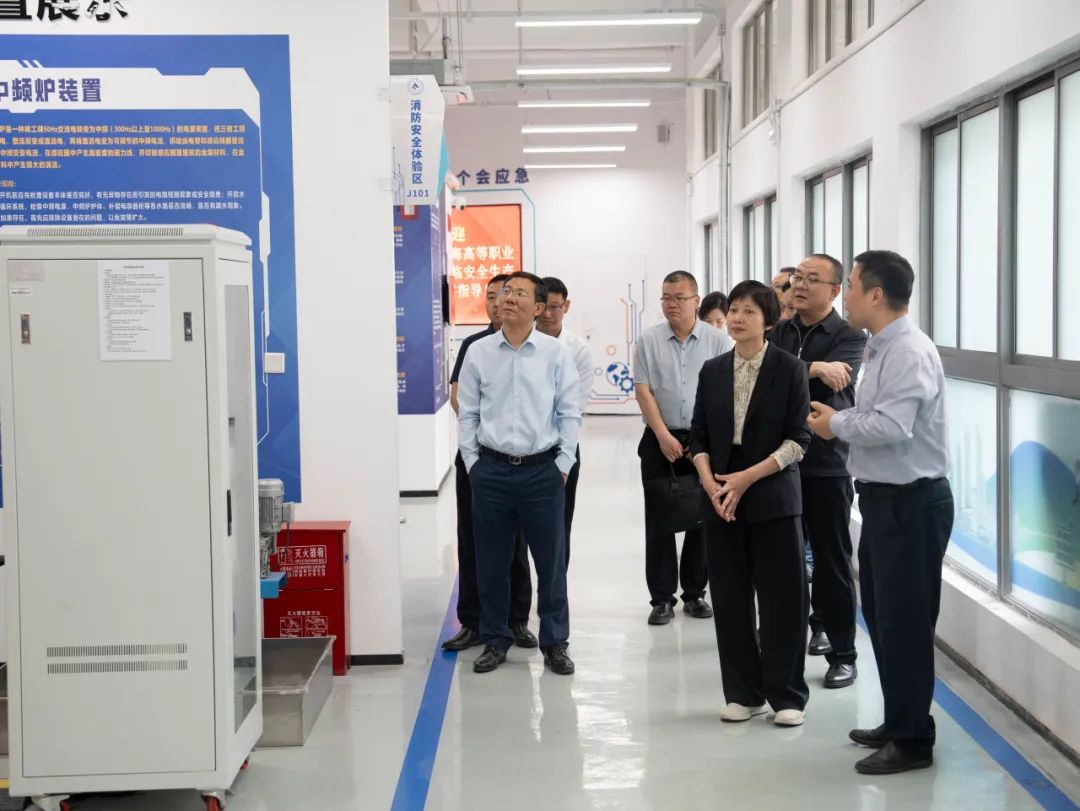 陈道霖一行实地参观了“学习强国”线下体验馆、新吴区社区学院、教育部工业机器人人才培养中心、高新区应急管理人才培养中心和集成电路实训基地。双方围绕东西部协作、产教融合、校企合作等领域开展广泛交流。