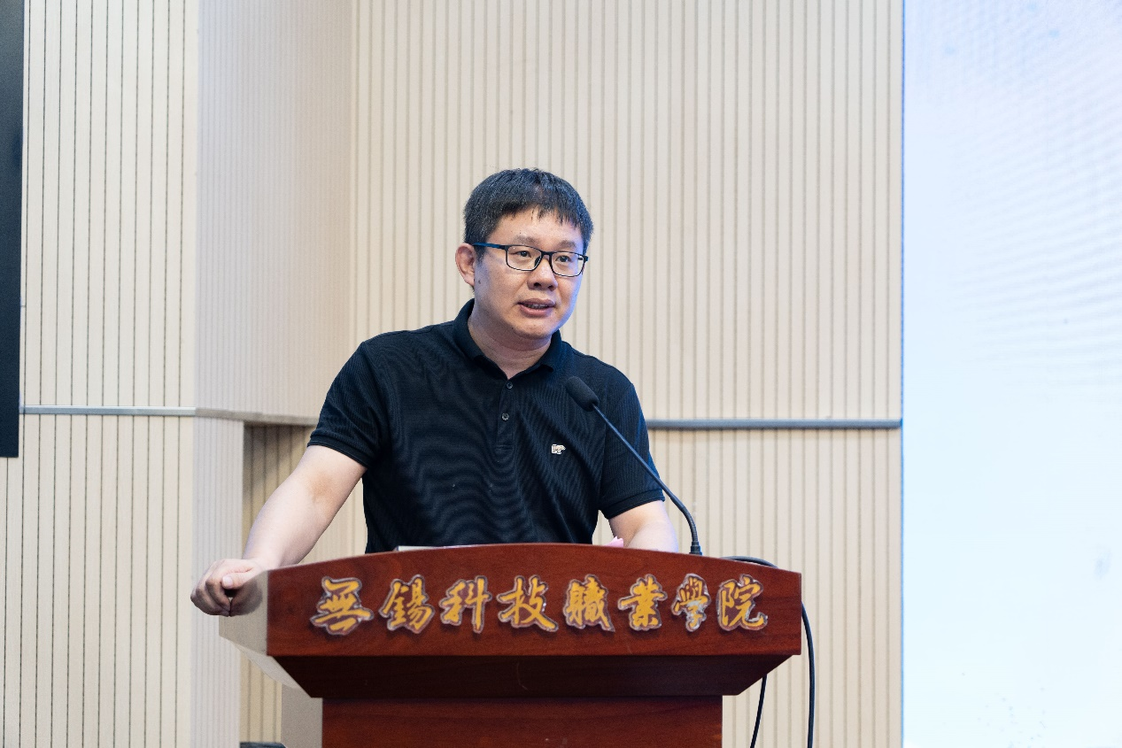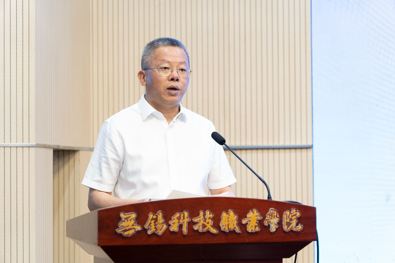 高鹏飞作为企业代表发言。他表示,公司作为无锡市集成电路产教联合体的牵头单位,将战略规划与服务国家战略融为一体,借打造集成电路供应链、解决“卡脖子”问题做出应有的贡献。基于联合体的优势基础,公司与联合体内院校在集成电路高技能人才培养方面开展了深度合作,通过签订党团建协议、共享产业资源、共育专业人才等方式,全方位支持联合体建设。公司将充分发挥牵头企业带动作用,以教育链、人才链、产业链深度融合为使命,以集成电路人才培养时代重任,为联合体院校学生提供更多优质的实习实践机会和职业发展平台。