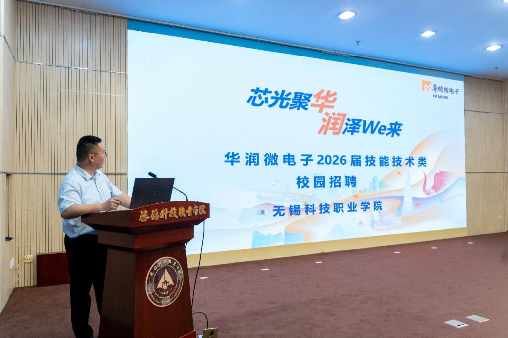 在启动仪式后,华润微电子有限公司、无锡深南电路有限公司、澳鹏科技(无锡)有限公司依次进行招聘宣讲,详细介绍了企业发展前景、人才需求及培养计划,引发了在场学生的浓厚兴趣与积极参与。