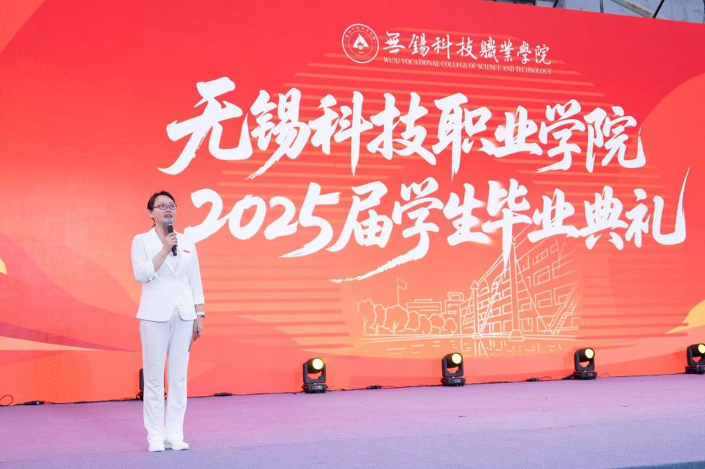 莅临毕业典礼现场的企业代表无锡威孚高科技集团股份有限公司组织人事部部长徐娇也把祝福送给同学们,希望同学们保持一颗初心和热情,在职场中找到自己的定位和价值,不断追求进步和卓越。