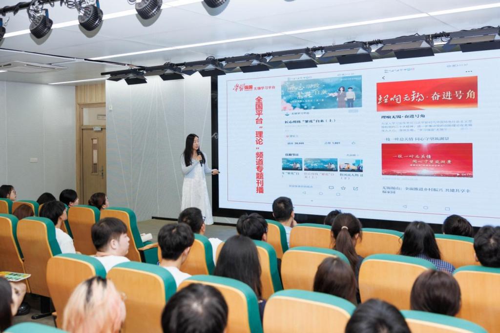 “学习强国”学习平台不仅是理论学习的阵地,更是青年学生成长的乐园。活动现场,“学习强国”无锡学习平台工作人员作平台宣推,介绍其丰富的学习资源和使用的新功能新技巧。