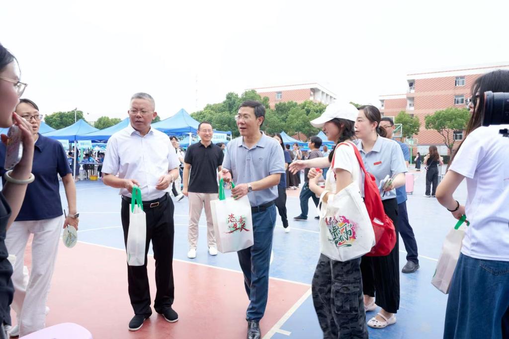 在各学院迎新点,校领导仔细询问在场新生的报到情况,与新生亲切交谈,叮嘱各学院持续推进好教学育人各项工作。
