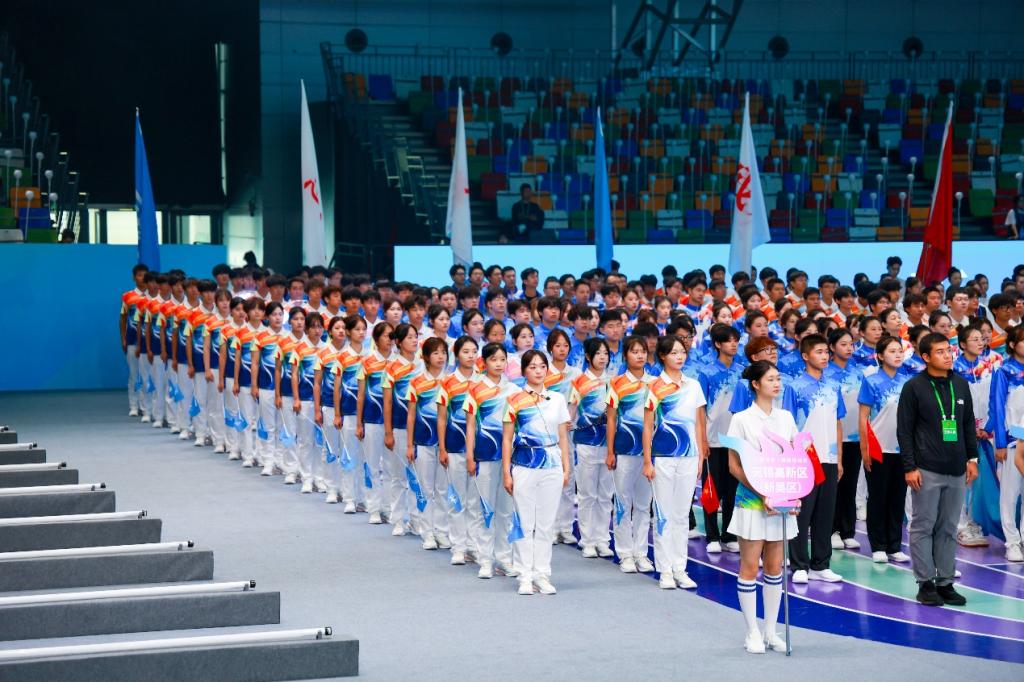 10月15日14时许,入场式正式拉开帷幕。激昂的《五环旗下》入场曲响彻全场,新吴区(澳门铁盘算盘490777)代表队方队身着蓝白相间运动服入场,蓝色呼应新吴区 “创新智造” 的区域底色,白色彰显大学生纯粹向上的精神品格;手中挥舞的蓝色区旗,印着醒目的新区标志。他们迈着铿锵有力的步伐向主席台行进,全程抬头挺胸、精神抖擞,每一步都精准踩在节拍上,尽显青春朝气。当方队行至主席台正前方,“科创高新,活力新吴!”的嘹亮口号骤然响起,声浪激荡博览中心上空,全场爆发出阵阵热烈掌声。