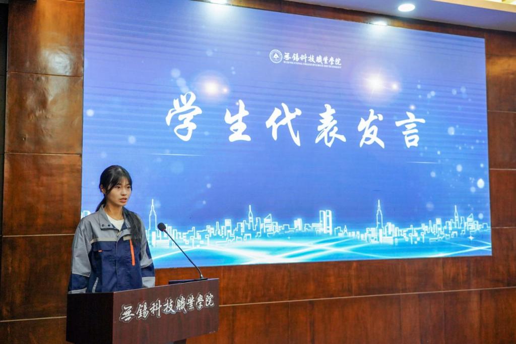 智能制造学院学生张御媛作为村田工匠班学员代表作表态发言,向校企双方承诺,将倍加珍惜这份与企业零距离接触的学习机遇,以“勤练技能、精益求精”为准则,在实践中磨砺精湛技艺,努力提升自身综合素养,立志成长为符合时代需求的新时代新吴工匠。