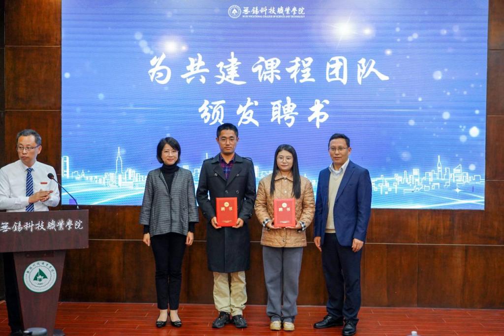 无锡村田电子有限公司副总经理陈俊与校智能制造学院党总支书记鲍都娇共同为校企共建课程团队代表颁发聘书。