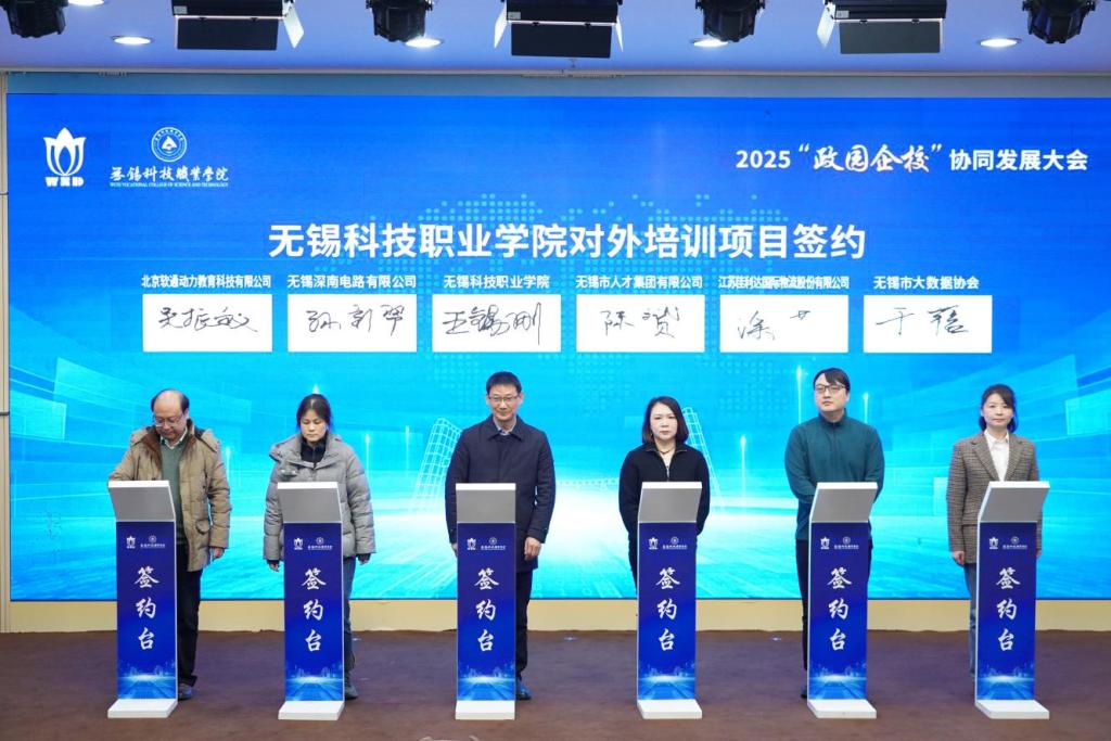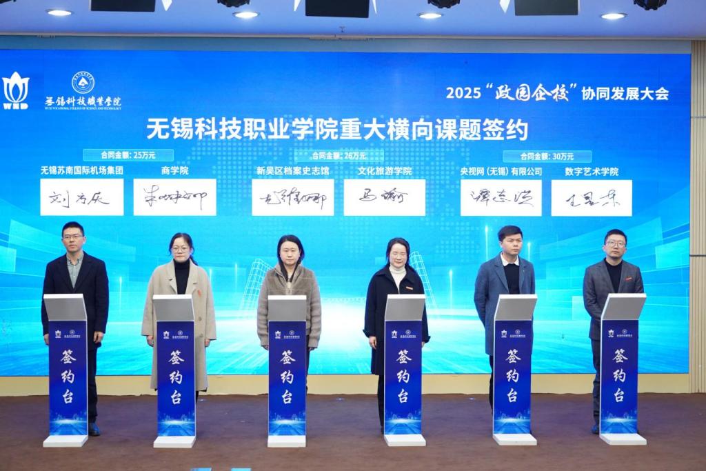 大会现场还举行了对外培训项目、定制式人才培养项目和重大横向课题项目的集中签约。同时,学校六个二级学院与区内先导产业园、梅里古镇文化园等六个特色产业园区结对,实现精准对接、深度合作。这一系列合作项目的集中落地,展现了协同生态的旺盛活力,构建起一张覆盖教育链、人才链、产业链、创新链的全方位合作网络,为区域高质量发展注入了强劲的“科院动能”。