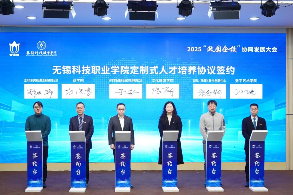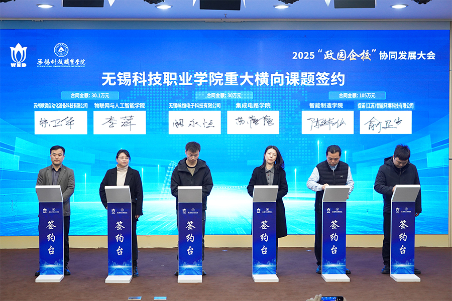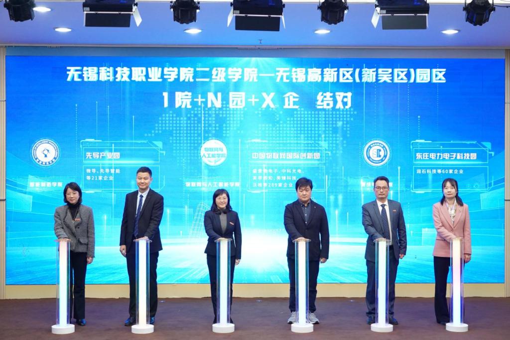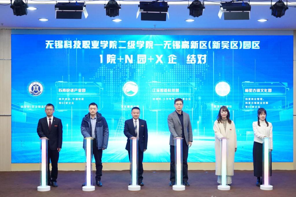 学校与无锡中欧产业创新区、无锡(国家)软件园、无锡新加坡工业园、无锡中关村科技创新园的代表共同为学生实习就业基地、教师企业实践基地、科技公共服务中心、文化创新创业实践基地揭牌。四个基地的落地,标志着学校“1+N+X”(一个学院对接N个园区,服务X家企业)的服务模式实现了物理空间的扎根,为人才共育、技术转化提供了常态化阵地。