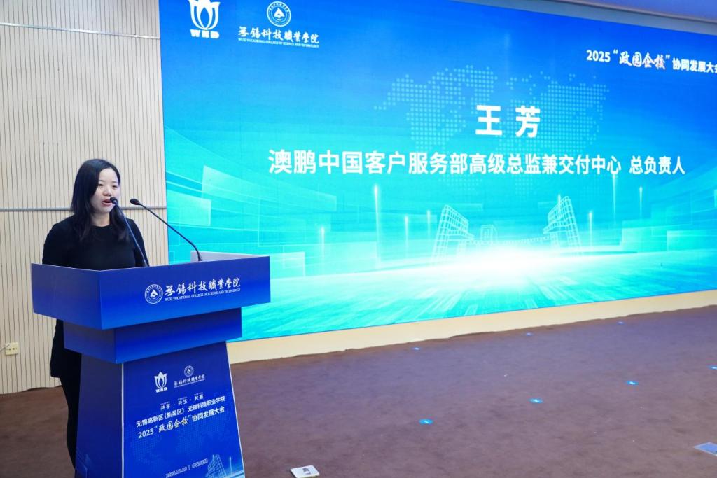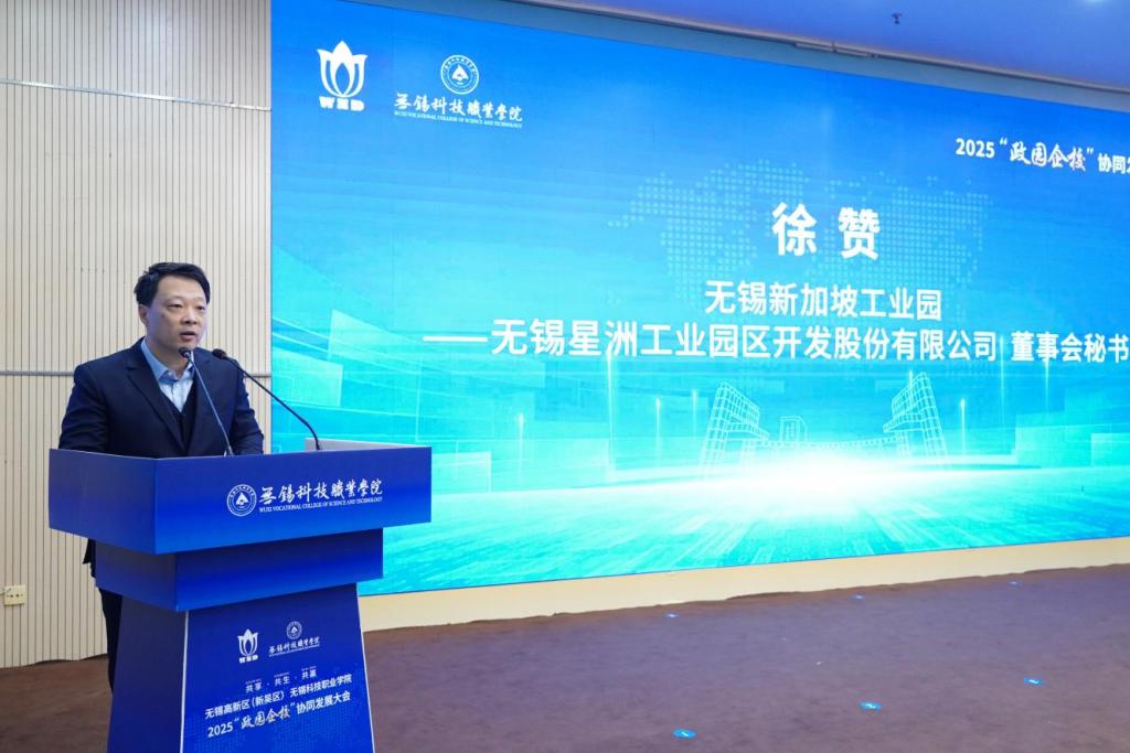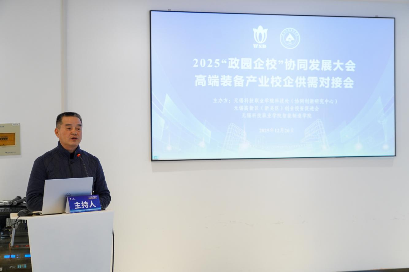 无锡高新区党工委副书记、管委会副主任顾国栋在致辞中指出,深化产教融合是推动产业升级、培育新质生产力的关键举措。党的二十届四中全会通过的“十五五”规划建议,对加快高水平科技自立自强、引领发展新式生产力作出系统部署,明确提出一体推进教育、科技、人才发展。作为全市的经济“压舱石”、创新“主阵地”,高新区的发展需要源源不断的高技能人才和科技创新支撑。这既是时代赋予学校的重任,也是学校实现高质量发展的内在要求。此次大会的召开为深化校企融合发展、创新人才培养模式、赋能产业提质升级搭建了良好的沟通合作平台,对于推进教育科技人才一体化发展,赋能地方科技创新和产业集群发展必将产生深远影响。