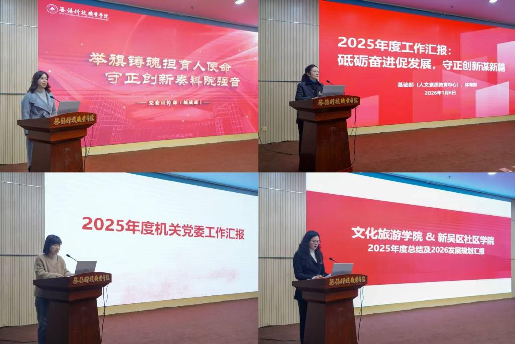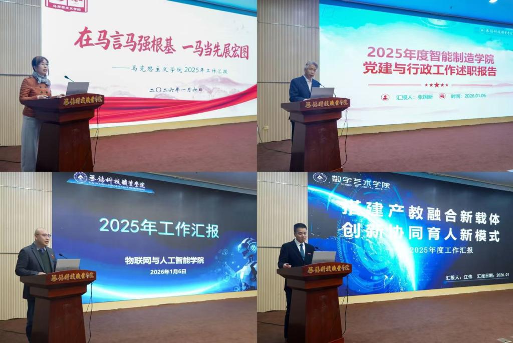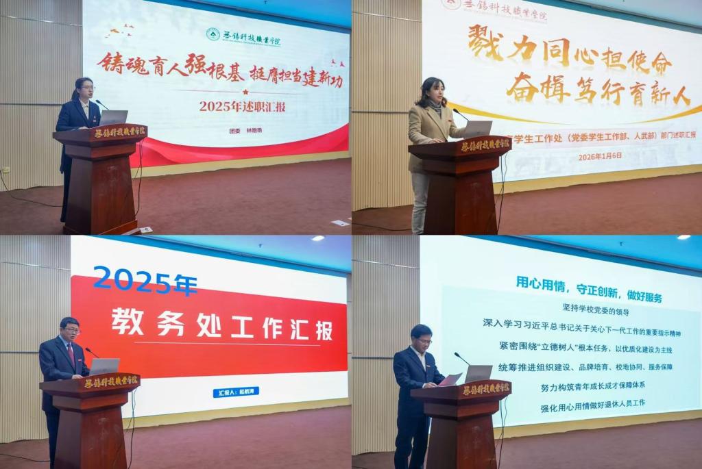 会上,10 个机关职能部门、8个二级院部的相关负责人围绕本部门、本单位2025年度核心指标完成情况、工作特色与创新亮点、存在问题与不足以及2026年度工作思路、重点举措与目标展望等方面进行了系统全面的现场述职。其中,各二级院部和机关党委还专门就2025年度党建工作目标任务的完成情况、特色做法、党建与业务融合成效,以及对2026年党建工作的规划和思考等方面进行了专项述职汇报。