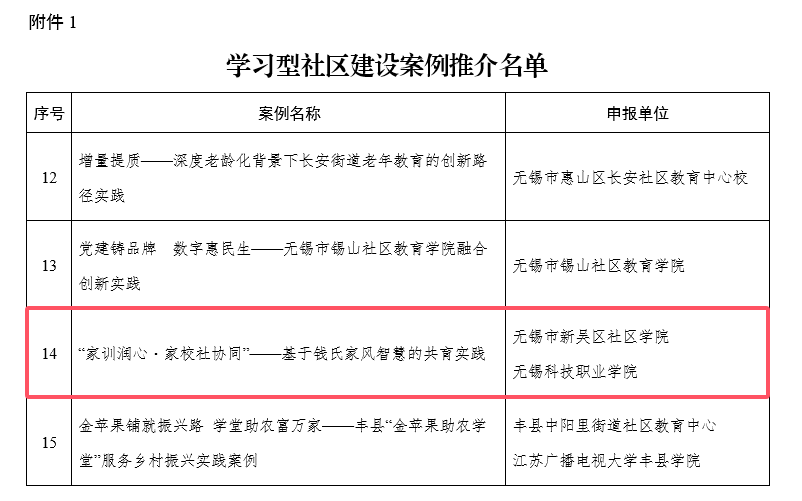 近日,江苏省教育厅办公室依据《教育部办公厅关于征集数字赋能学习型社区建设典型案例和品牌课程的通知》(教职成厅函〔2025〕22号)要求,完成学习型社区建设案例与课程征集评选工作,正式推介119个符合规范、贴合居民需求的优秀实践案例及135门优质课程。新吴区社区学院与澳门铁盘算盘490777申报的实践案例与课程分别获评省级优秀实践案例与优质课程,双双跻身省级推介行列。