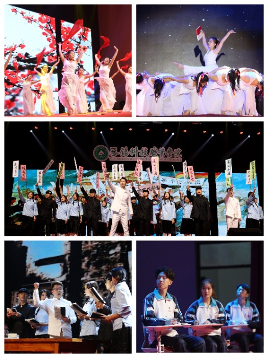 活动伊始,无锡科院习近平新时代中国特色社会主义思想研习社师生们带来情景剧《中华复兴路上的青春力量》,带领现场观众重温了那段热血岁月的光荣与梦想,重走了那段激情与信仰之路,营造出激昂振奋的现场氛围。学校大学生艺术团舞蹈《遇见》用坚毅美妙的舞蹈语言展现出中国共产党对于初心的执着追求,韵味深远,感染人心。学校智能制造学院于阔老师一曲雄浑坚定的《追寻》,唱出了中国锐意进取的磅礴之力,致敬伟大时代,再一次点燃全场。新吴区新安街道的基层社区年轻干部曹钱一为现场观众带来新吴区优秀微党课《与奋斗同行 书民族华章》,“时说新语,润物吴声”,马克思主义思想深植新吴青年心中,伟大思想在新吴大地闪耀光芒。校团委汤子杰老师倾情演绎歌曲《向往》,讲述了激动人心的中国故事,展现了中国共产党人秉持初心,以信仰为旗、以真理为路,为人民谋幸福、为民族谋复兴的伟大历程。党的十九届五中全会擘画了我国未来发展的宏伟蓝图,团省委首批青年讲师团成员、学校思想政治理论课教师严永祥与现场观众一同学习分享了党的十九届五中全会精神,号召青年学子青春聚力新征程,做名副其实的“强国一代”。专场活动在激昂的《国际歌》中圆满落幕。