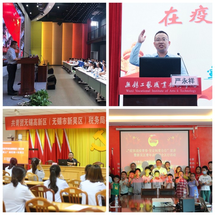在成为基层理论宣讲成员以来,严老师在市委讲师团、区委党校和省市区共青团组织的指导帮助下,在学校支持下,从“四个自信”方面入手备课,先后主讲了《纵贯历史维度 坚定文化自信》《从抗疫大考中坚定制度自信》《当前无锡高新区(新吴区)经济社会发展情况》《学悟伟大先锋 争当领域冠军》《习近平谈治国理政第三卷》《青年应在“区校一体”中乘风破浪》等内容,授课皆纳入区委党校和学校宣传统战部的精品党课中。理论宣讲达到30场,听众4085人,其中高新区(新吴区)20场,覆盖企业、社区、街道、学校、市区级机关。听课抬头率、点头率、回请率都很高,无锡工艺职业技术学院、新安街道、硕放街道等单位都多次邀课。课程受到市委宣传部一级调研员商波涛,高新区党工委委员、新吴区委常委、宣传部部长刘霞,高新区党工委(新吴区委)组织部副部长吴俊芬等领导的肯定,也得到了市委讲师团王铭涛团长和区委党校党务校长卞惠忠悉心的指导和推荐,并参加了省委宣传部理论宣讲骨干班培训。