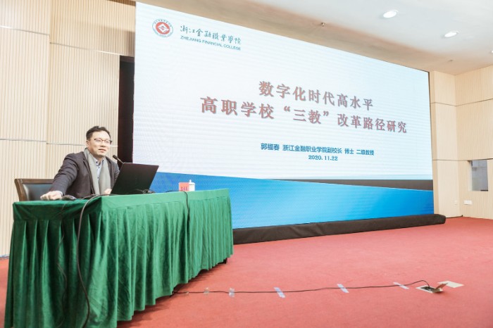 素养提升,共进共勉。下午14:30,中国高教学会职业技术教育分会秘书长、浙江金融职业学院郭福春教授在学校博文楼报告厅以“数字经济时代背景下的高职院校三教改革”为题为全校教师作专题报告。教师素养提升活动是校友日为教师提供的精神大餐,此次报告会的主题响应了《国家职业教育改革实施方案》以及《国务院关于加快发展现代职业教育的决定》等文件精神,为推进新时代背景下的“三教改革”提供了思路,是教师提升素质能力和教育教学水平,促进学校高质量发展的又一平台。