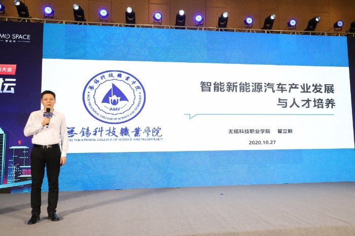我校瞿立新副校长做了题为《智能新能源汽车产业发展与人才培养》的主题演讲,介绍了我校“移动互联应用技术专业群(智能新能源汽车专业群)”的建设发展情况,以及专业群人才培养的特色和优势。他表示:“以多专业合力打造专业群,有效地提高人才培养的水平和质量。将专业群与无锡高新区产业群发展紧密结合,可以进一步加强创新教育,更好地实现专创融合,培养出更多符合产业需求的复合型人才,为无锡地区智能新能源汽车行业的发展提供有力的人才支撑。”
