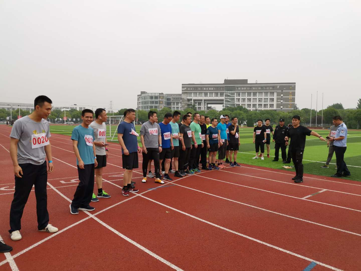 任务面前,体育部教师一马当先,利用专业优势,为干警们量身定做集训方案,并进行专业的指导和训练。尤其是一些党员教师积极发挥先锋模范作用,在困难中冲在前面。在5月15日的大雨中以及18号的烈日下,陈翔、栾文涛、徐晶三位党员教师克服困难,从体能测试前的准备活动到测试中各个项目的动作技巧以及赛前训练的方法等方面为新区公安干警提供了优质专业的体育指导与服务。特别是2000米长跑测试和坐位体前屈测试中,重点教授了跑动中的呼吸节奏和方法以及柔韧性测试的简单练习方法和测试技巧等专业知识,受到了公安干警的一致好评。