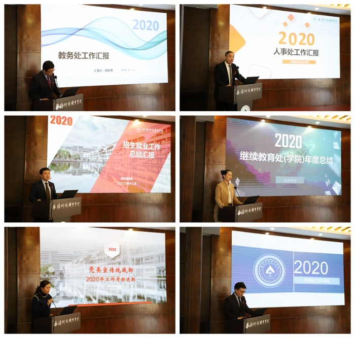 会上,6个机关一类部门,7个二级院部负责人分别就2020年度核心指标完成情况、工作的特色创新以及2021年的工作思考等方面进行现场述职。