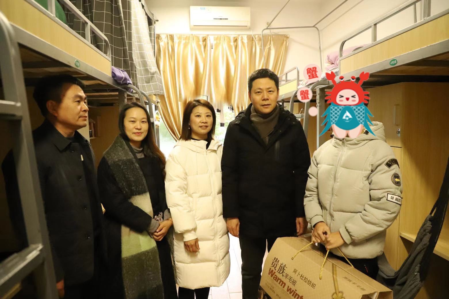 近日,无锡迎来了寒潮天气,气温降幅巨大,“速冻式”降温和混合式雨雪相互交织,气温降幅将达到12℃以上。12月29日,在校园关爱日期间,根据学校党委行政的安排,由学校关工委牵头,学生工作部(处)和各二级学院具体组织落实,学校组织开展了今冬“关爱送温暖”行动。学校党委副书记瞿立新,校关工委副主任王国忠,副校长韩宁,党委委员、组织部部长王锡刚,学生工作部(处)负责人,各二级学院相关负责人等,深入困难学生宿舍开展慰问。这些困难学生中有的是孤儿、有的是残疾学生、有的是少数民族困难学生,领导们的到来为他们送去了春天般温暖。