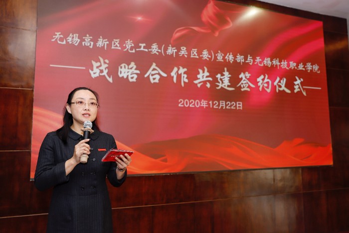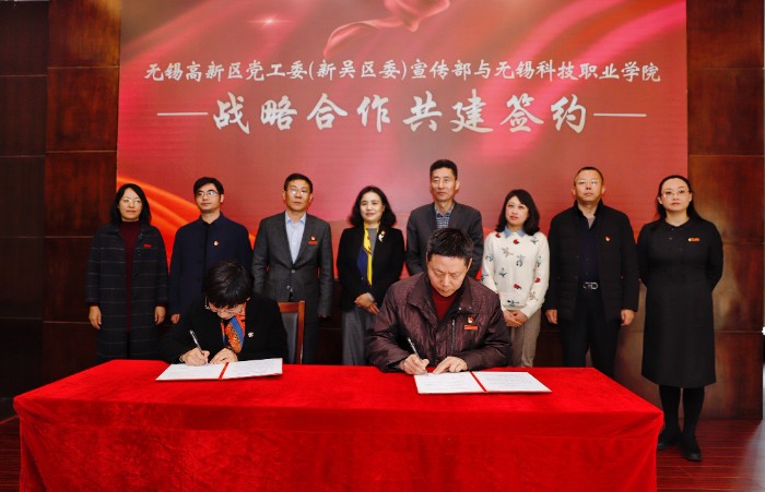 12月22日上午,学校与无锡高新区党工委(新吴区委)宣传部战略合作共建签约仪式在博达楼会议室举行,开启了政校战略合作的新篇章。无锡高新区党工委委员、新吴区委常委、宣传部部长刘霞,区委宣传部常务副部长钱韵,区文明办副主任鲍宇红,区网信办副主任赵俊;学校党委书记张国华,校长孙兴洋,党委副书记瞿立新,副校长华裕良、韩宁、邹洪芬出席了签约仪式。参加签约仪式的还有学校全体党总支书记、副书记,组织部、宣传统战部、团委、学生工作部(处)、信息中心、人文素质教育中心、数字艺术学院、文化旅游学院主要负责人,马克思主义学院全体教师和相关师生代表。仪式由副校长韩宁主持。