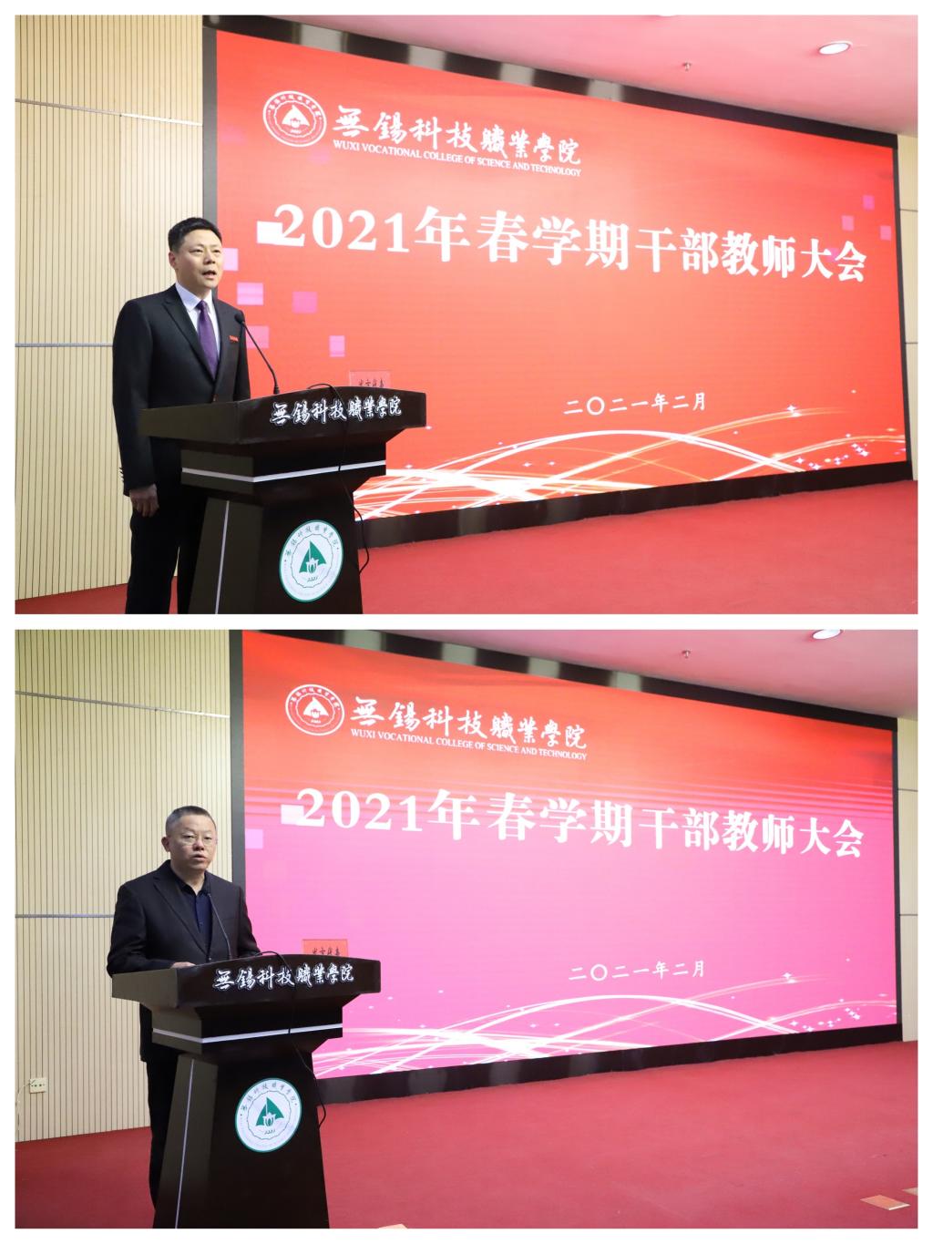 2月27日上午,学校在博文楼报告厅召开2021年春学期干部教师大会,回顾总结2020年各项工作,表彰年度先进单位和个人,并对2021年主要工作作全面部署。党委书记张国华讲话,校长孙兴洋作工作报告,党委副书记瞿立新,副校长华裕良、韩宁、邹洪芬,纪委书记范式出席大会,全体教职工,物业、保安、宿管代表,学生校长助理代表参加大会。