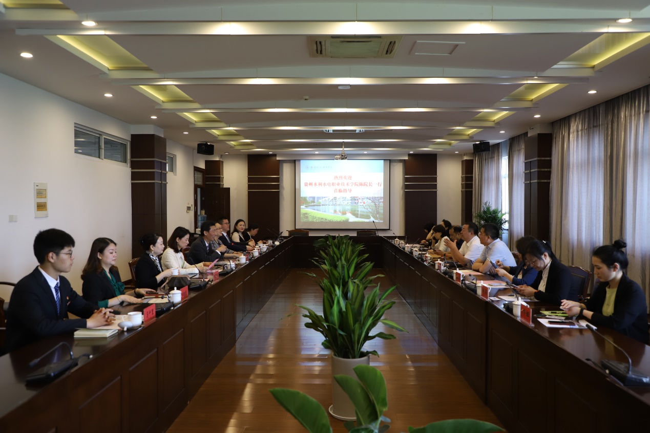 4月29日,贵州水利水电职业技术学院党委副书记、院长陈海梁,携党委委员、副院长陈明、盛莉,党委委员、宣传部部长蔡梅,学生处、外事处、办公室等相关负责人,四川兴合田职业教育研究院副院长胡刚来校交流。我校校长孙兴洋热情接待,副校长韩宁、各相关职能部门、二级学院负责人及学生校长助理代表参加接待和座谈交流。