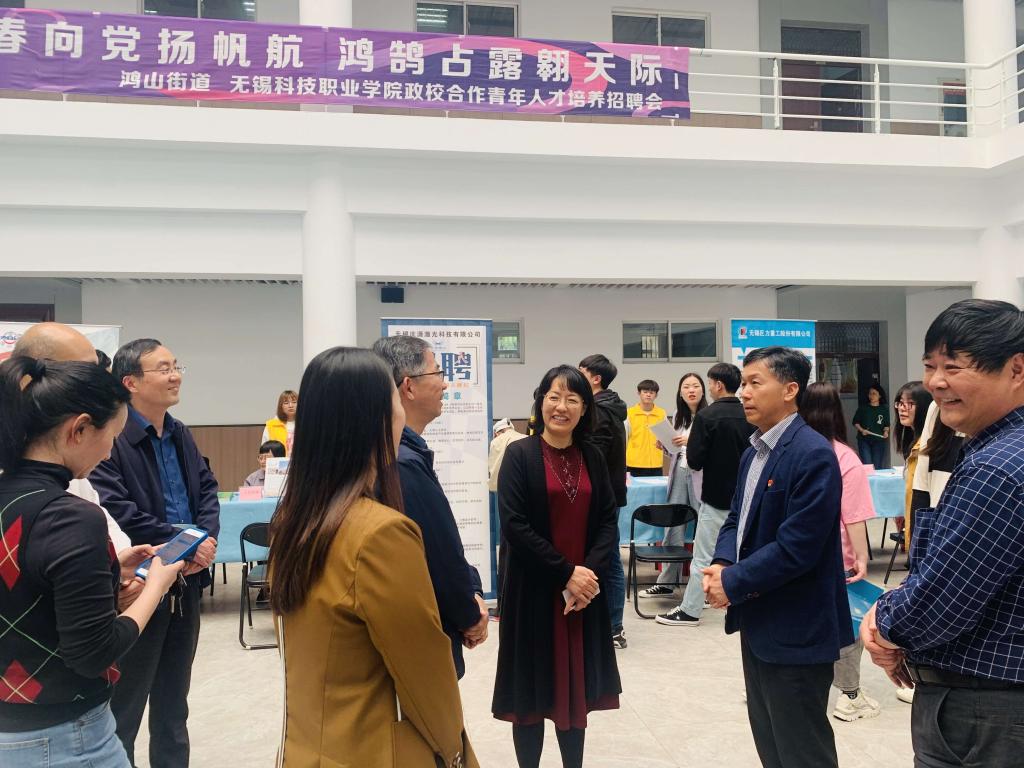 招聘会期间,物联网技术学院党总支和鸿山街道经济发展局党支部进行了党建工作座谈交流。双方就各自党建工作的基本情况进行了深入交流,进一步增进了双方相互的了解和共识,在党员政治、党性、党风、党史教育等方面形成了统一思路。