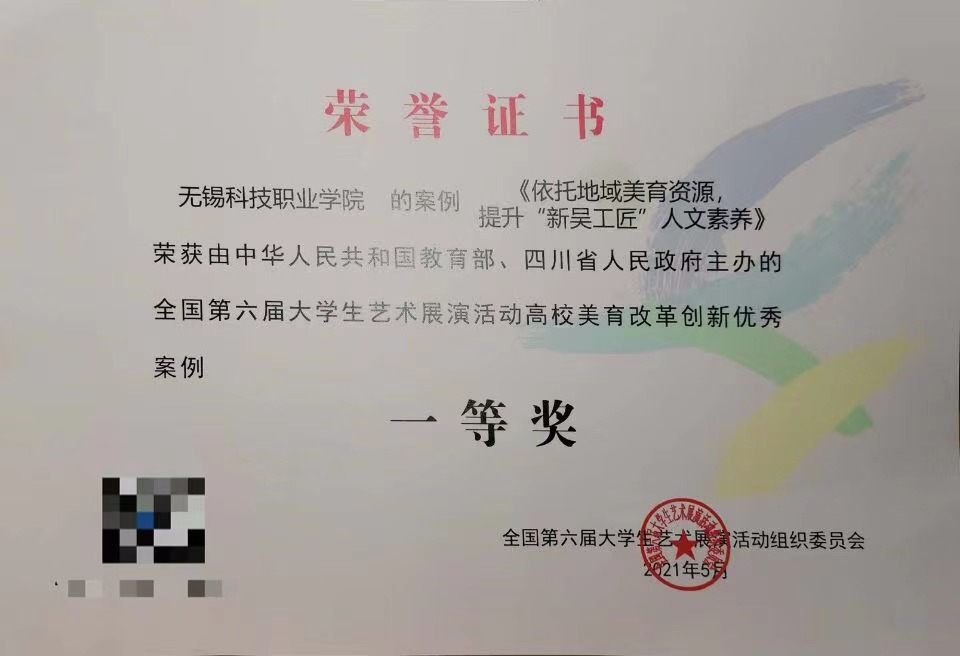 5月12日,由教育部主办的全国第六届大学生艺术展演高校美育改革创新优秀案例报告会在成都电子科技大学举行。经评选,我校美育改革创新案例《依托地域美育资源,提升“新吴工匠”人文素养》喜获全国高校美育改革创新优秀案例一等奖。案例负责人宋春婷老师参加本次报告会,并在大会做交流发言。案例以问题为导向经过深挖和整合地域美育资源后,就 “新吴工匠”打造过程中所进行的美育实施项目、具体做法、育人成效进行了详细阐述。