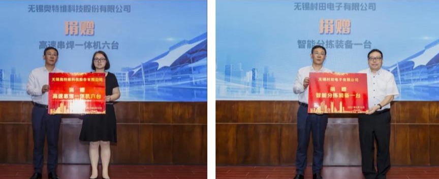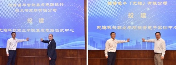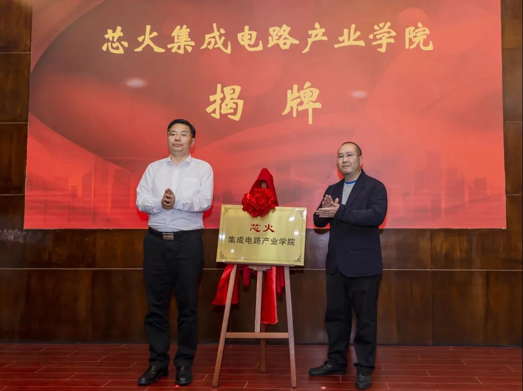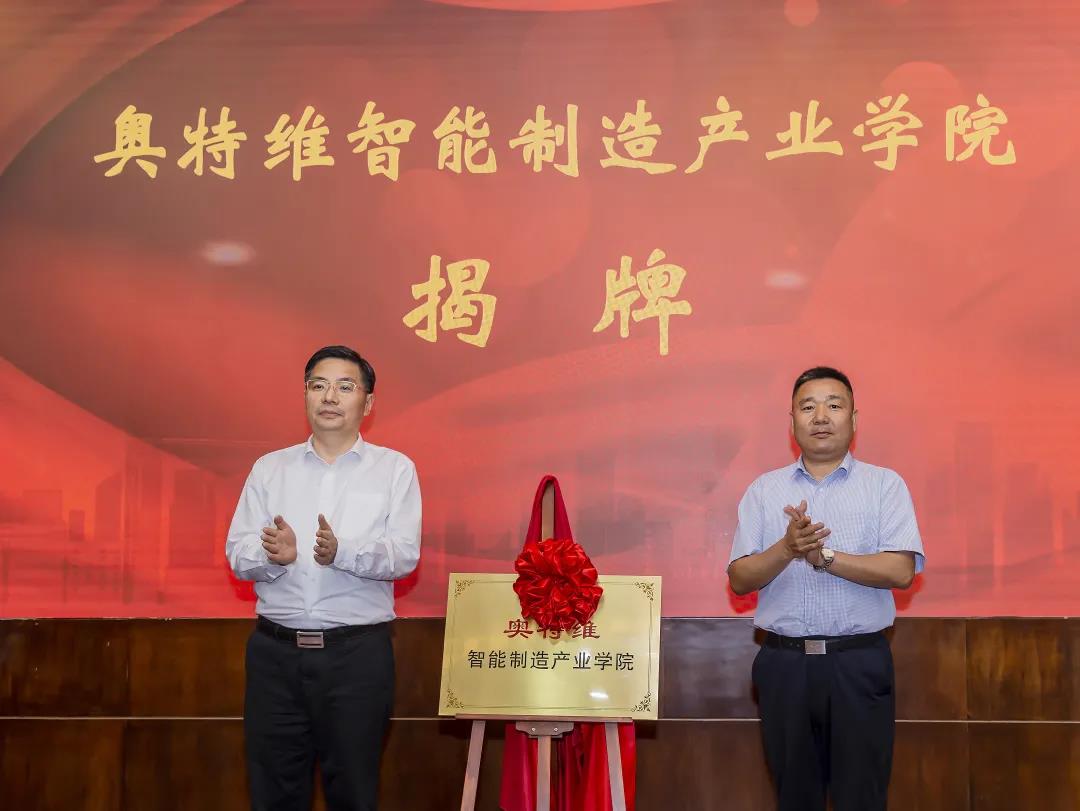 崔荣国与企业代表共同为芯火集成电路产业学院、奥特维智能制造产业学院揭牌