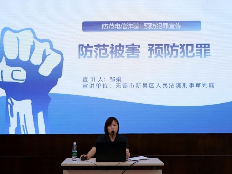 最后,由新吴区人民法院刑事审判庭法官作了题为“防范被害 预防犯罪”的专题授课,通过对防范电信诈骗类等案件的分享,提醒同学们保护个人信息,有效防范电信诈骗。