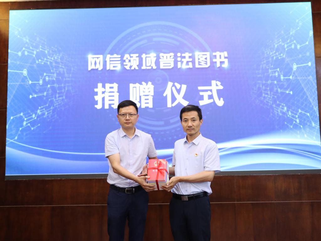 新吴区委网信办、区司法局相关负责人为新吴区6家网信普法基地授牌,向我校赠送了网信领域普法图书,并发布了网信普法作品征集活动。