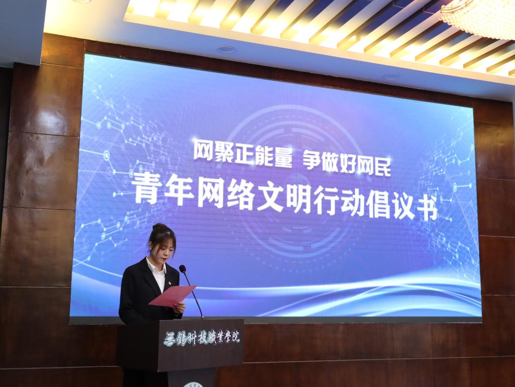 学生代表宣读了文明用网倡议书,倡议广大青少年依法上网用网,做依法上网用网的践行者和推动者,并带动其家庭和社交群体依法上网,以青春正能量助力网上空间法治化。